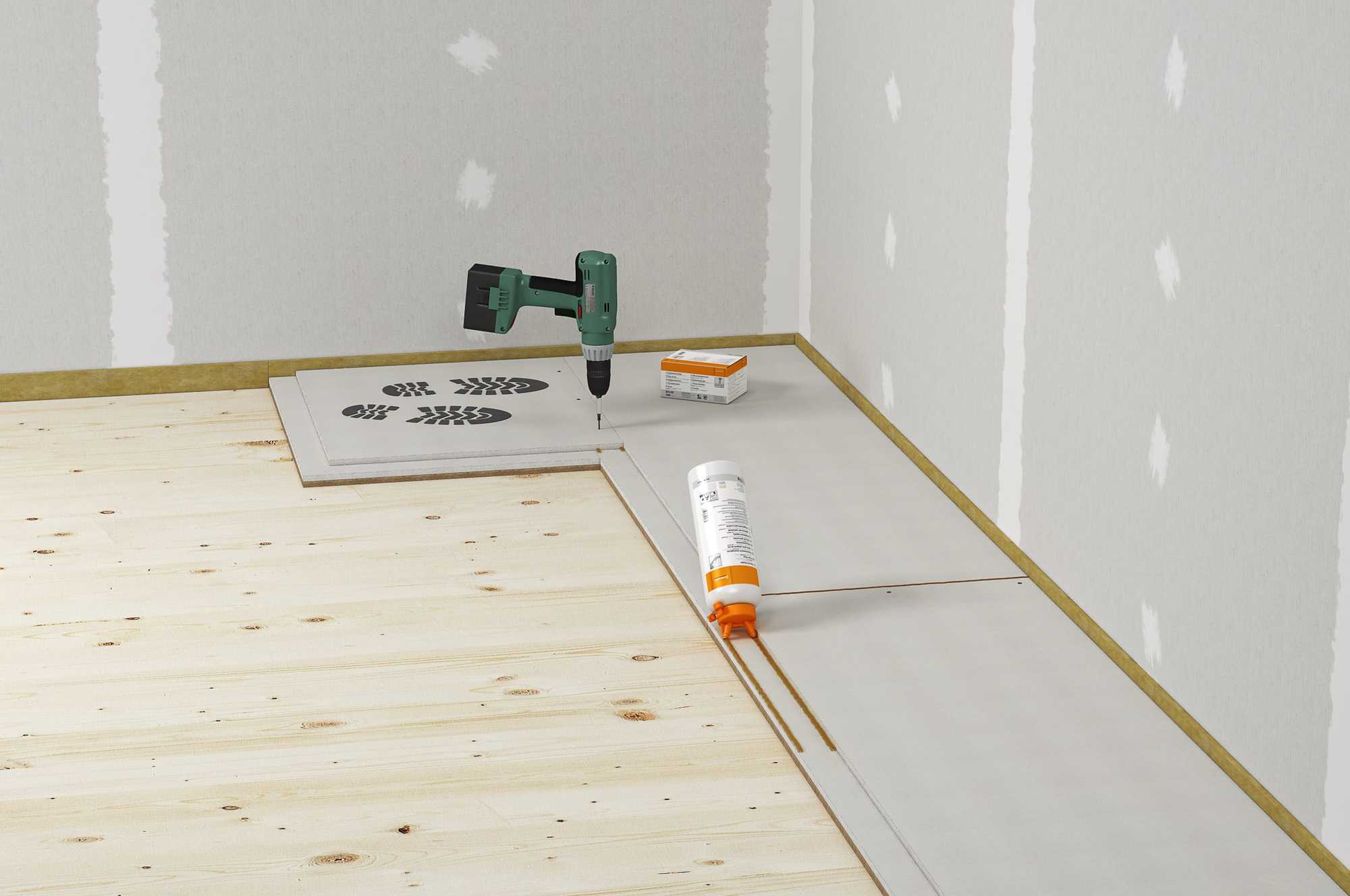 Geringe Aufbauhöhen sorgen dafür, dass beim Einbau von Fermacell Bodensystemen nur wenig Raumhöhe verloren geht.