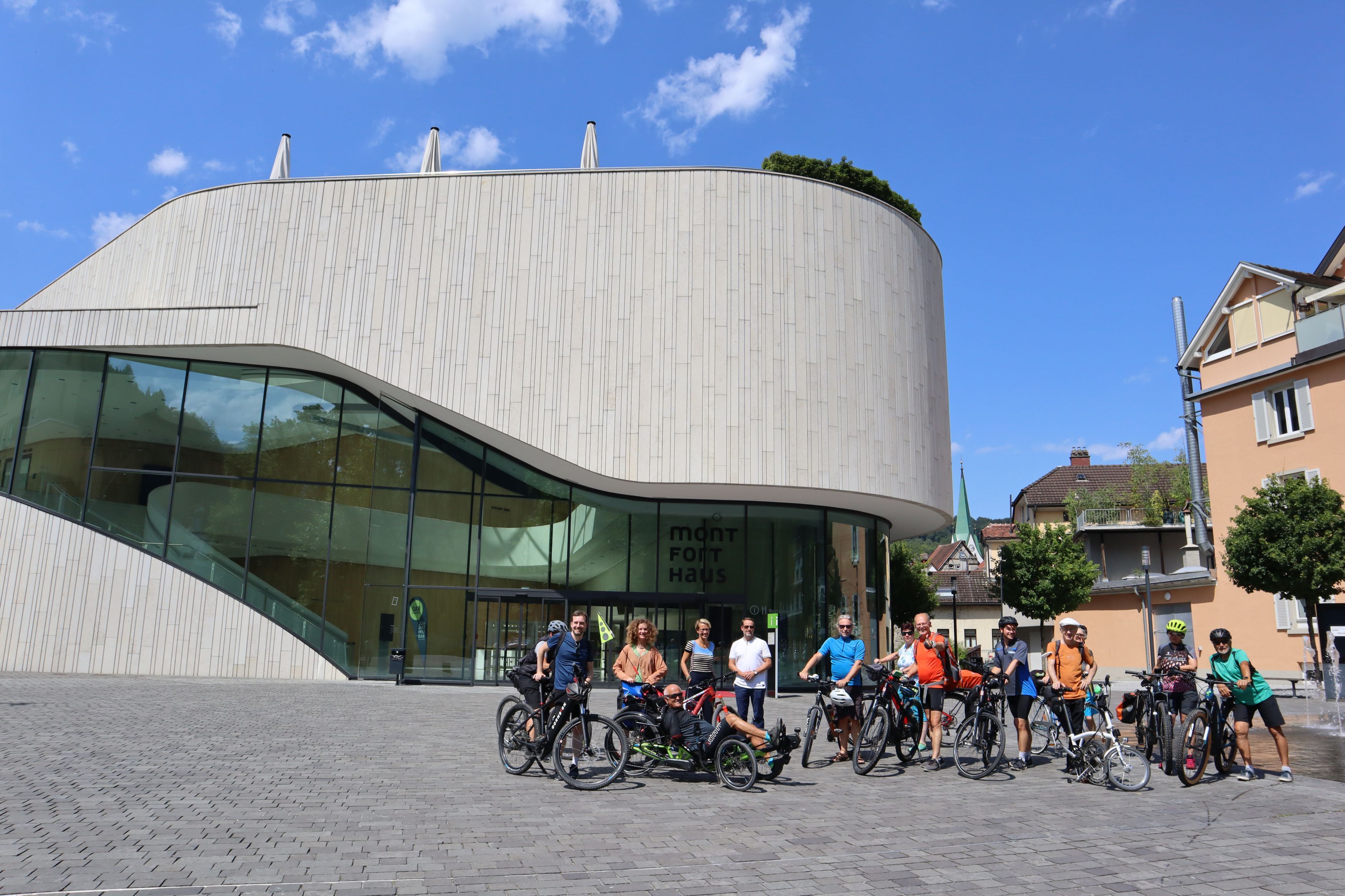 Teilnehmer*innen vor dem Montforthaus in Feldkirch.