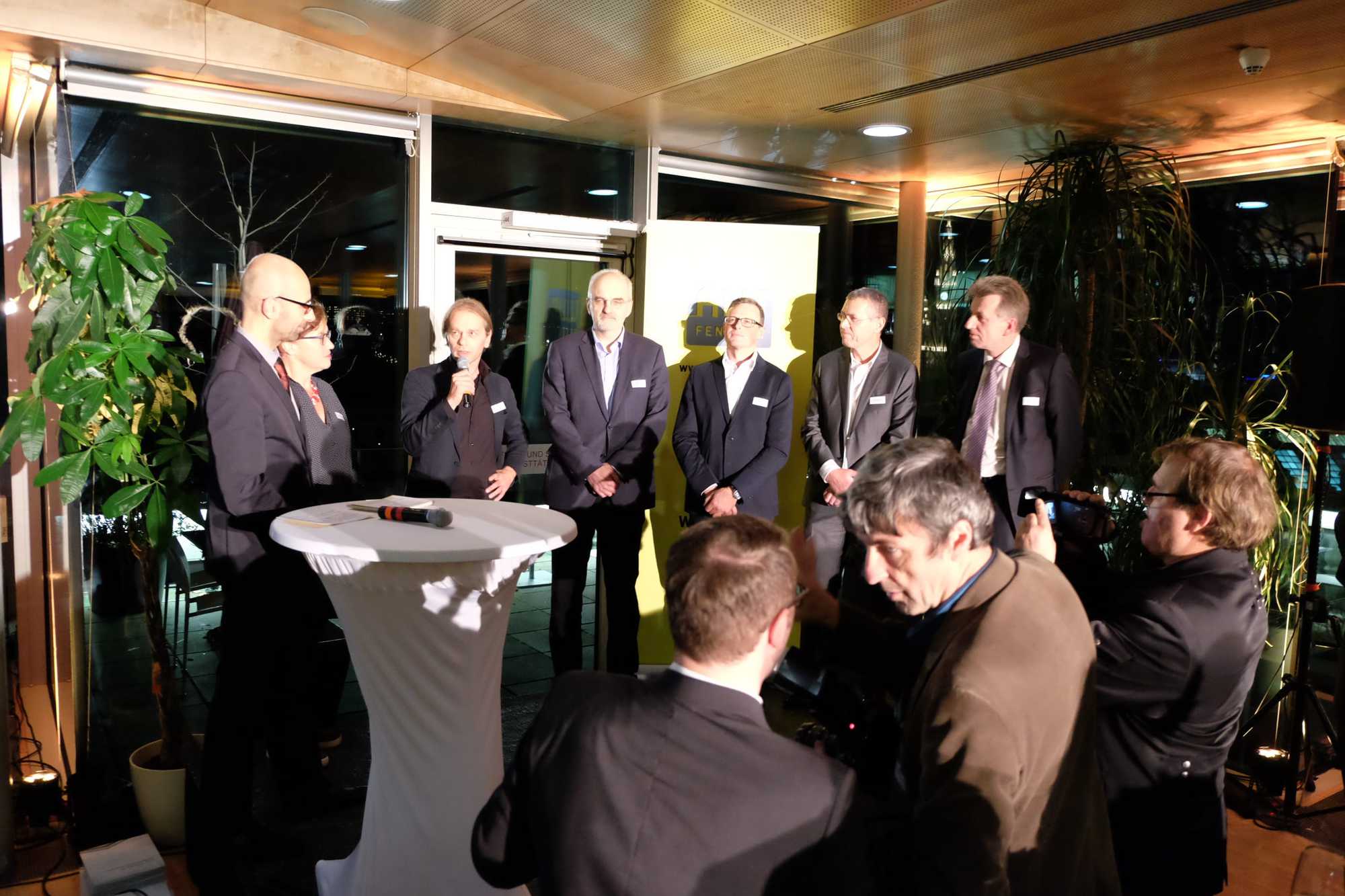 v.l.n.r. Moderator Michael Bauer, Evelyn Rudnicki und Christoph Lammerhuber (pool Architektur ZT GmbH), Josef Wiesinger (at home Immobilien GmbH.), Andreas Malai (Neue Heimat) sowie Roland Lehrner und Hans Tritremmel (Alu‐Sommer).
