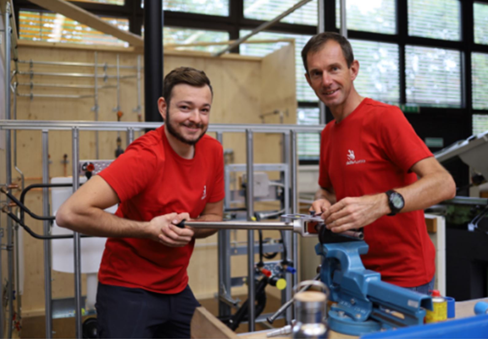 Mein Ziel ist, dass die Teilnehmer eine moderne Installation durchführen. Daher habe ich mich für ein Trockenbausystem und Sanitärmontageelemente entschieden, unter anderem wird auch ein Urinal-Montageelement montiert. Neben dieser Installation mit Geberit Montageelementen und kompletter Wasser- und Abwasser-Verrohrung werden die Teilnehmer auch eine Heizungs- und Gasinstallation in altbewährter Installationstechnik ausführen.