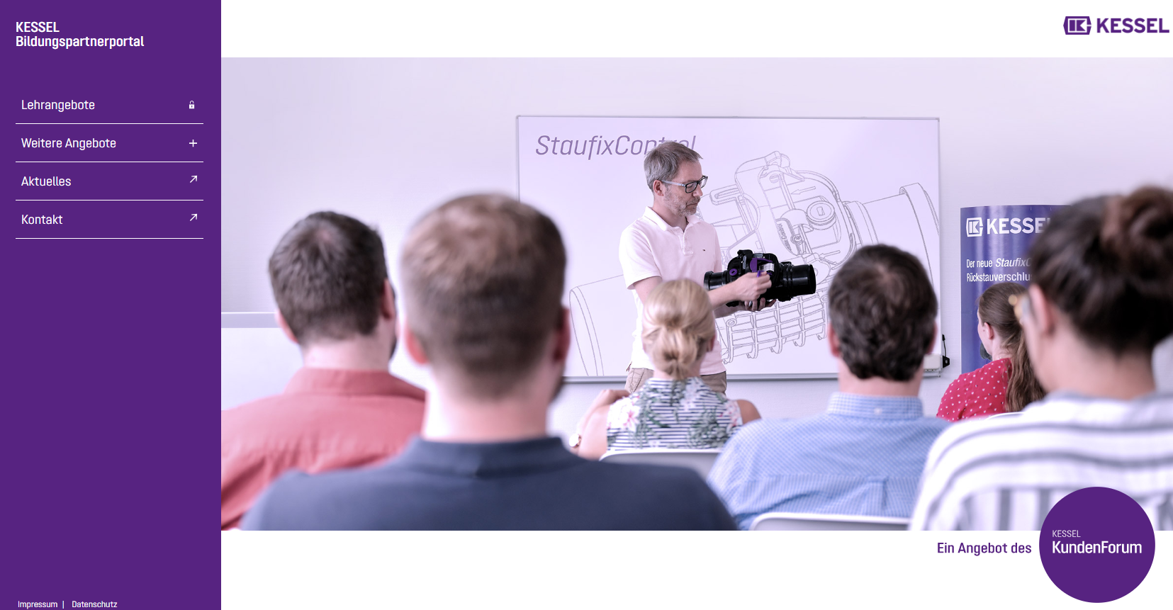 Registrierte Nutzer haben Zugriff auf die gesamte Lehrmittel-Bibliothek, die unter anderem Seminar-Präsentationen, Erklärfilme und Funktionsvideos sowie Bildmaterial und Funktionsmodelle beinhaltet. Lehrende können sämtliche Inhalte kostenfrei und nach Belieben für Unterrichtszwecke nutzen. Darüber hinaus lassen sich über das Portal individuelle Seminare mit den Experten von Kessel sowie Werksbesuche vereinbaren.