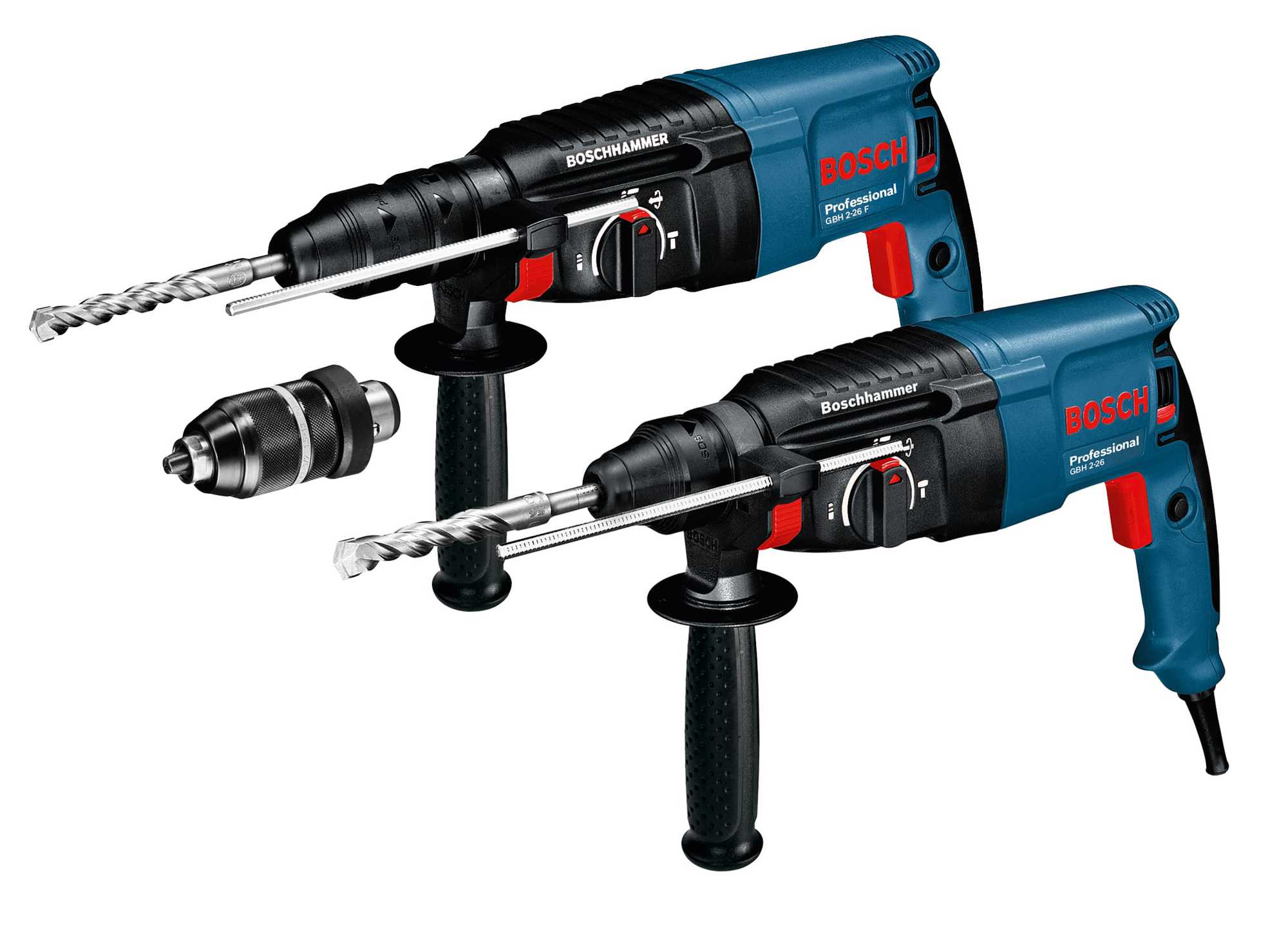 Die Boschhämmer der Zwei-Kilo-Klasse wurden noch einmal adaptiert: Bosch ersetzt die Modelle GBH 2-28 DFV Professional und GBH 2-28 DV Professional durch eine neue Bohrhammer-Generation, den GBH 2-28 F Professional und den GBH 2-28 Professional. Diese bieten mit 880 Watt nun noch mehr Leistung. Auch der Allrounder GBH 2-24 Professional wird leistungsstärker. Er bietet als GBH 2-26 F Professional und GBH 2-26 Professional künftig 830 Watt Leistung und einen größeren Bohrdurchmesser von 26 Millimetern in Beton. Gewählt werden kann jeweils zwischen dem Modell mit Festfutter und dem Modell mit Wechselfutter, bei dem zusätzlich ein Schnellspannbohrfutter für Rundschaftbohrer mitgeliefert wird.