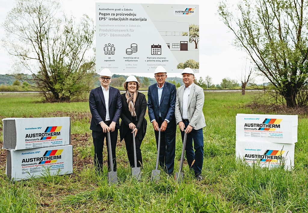 Austrotherm startet mit der Errichtung des ersten EPS-Dämmstoff-Werkes in Kroatien. In Zabok, 30 Kilometer nördlich von Zagreb, sollen künftig sowohl das weißes Austrotherm EPS als auch das noch besser dämmenden graue Austrotherm EPS-Plus hergestellt werden. AUch die Produktion von EPS-Formteile ist geplant. Produktions- und Lagerhallen sowie Büroräumlichkeiten werden rund 8.000 m2 umfassen. Die Investitionskosten für das Greenfield-Projekt belaufen sich aktuell auf rund zwölf Millionen Euro. Die Inbetriebnahme des Produktionsstandortes ist im ersten Halbjahr 2024 geplant. Austrotherm wird im kommenden Jahr in Kroatien 30 Mitarbeiter*innen beschäftigen.