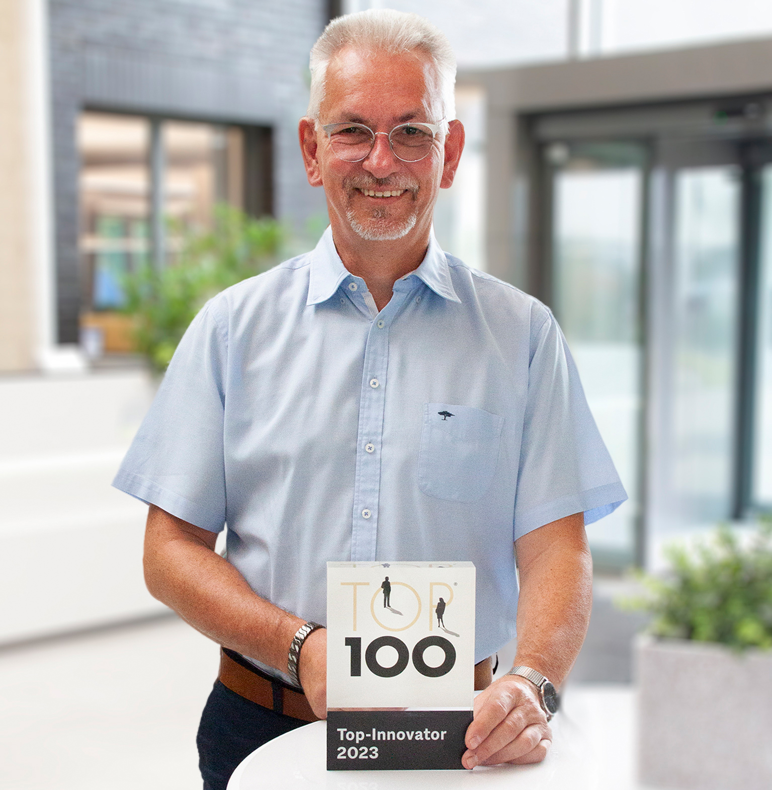 Sita wurde als Innovationsführer im Mittelstand geehrt. Geschäftsführer Thomas Kleinegees freut sich über die Auszeichnung Top-Innovator 2023.