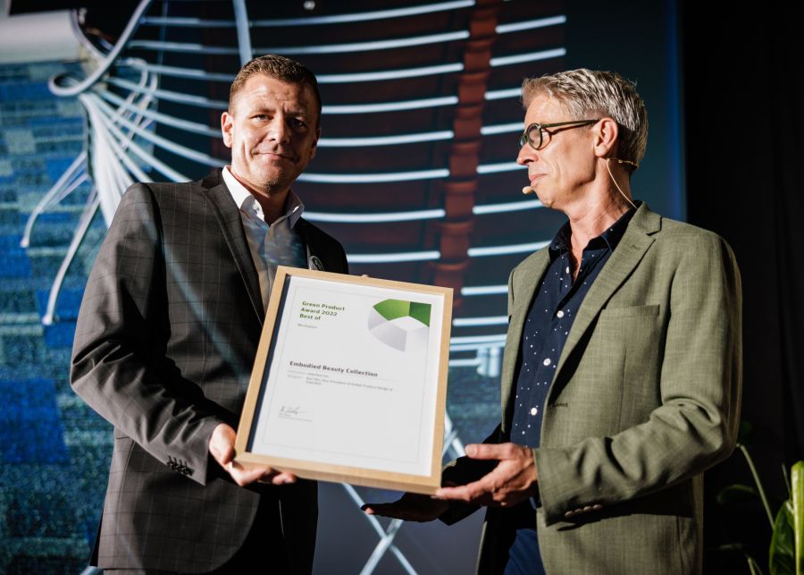 Der Teppichfliesenkollektion Embodied Beauty wurde jetzt mit dem Green Product Award ausgezeichnet, einem internationalen Preis für Produkte und Dienstleistungen, die in puncto Nachhaltigkeit, Innovation und Design überzeugen. Die Teppichfliesenkollektion erhält die seit 2013 etablierte Auszeichnung in der Kategorie "Best Workspace Product by an Established Company".