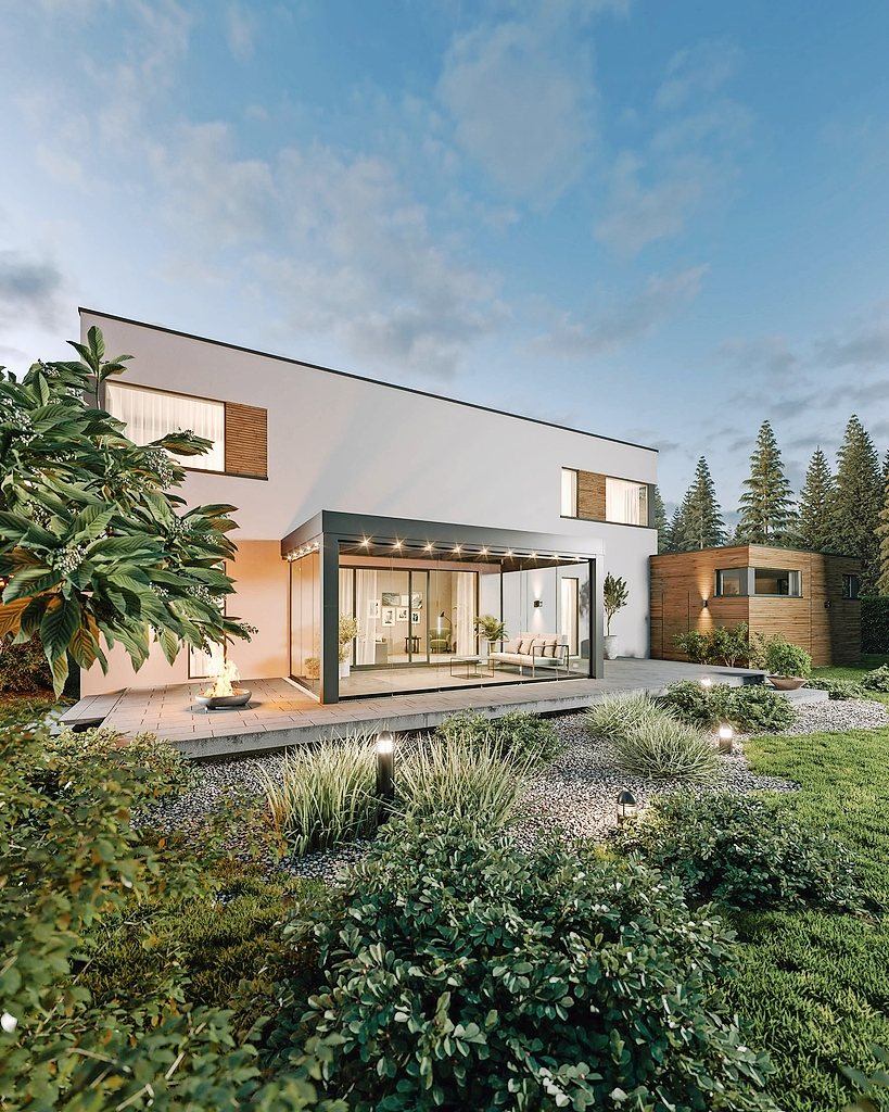 Das neue SF300 besticht durch seine kubische Form und passt sich besonders gut an moderne, geradlinige Bauweisen an. Mit einer Dachneigung von nur zwei Grad und innen liegender Statik entsteht ein nur geringes Gefälle, das jedoch Regenwasser gezielt abführt. Weil die Dachfläche dezent hinter der 300 Millimeter hohen, umlaufenden Kubus-Verblendung verborgen liegt, ist die Neigung nicht sichtbar. Dies ermöglicht ein flaches, aber elegantes Erscheinungsbild. Verdeckte Fallrohre und verschiedene Designvarianten des Wasserablaufs sorgen zusätzlich für eine zuverlässige Entwässerung des Dachs. "So wie all unsere Terrassendächer besteht auch das SF300 aus einer Aluminiumkonstruktion – die Materialeigenschaften machen es also äußerst witterungsbeständig und langlebig“, erklärt Geschäftsführer Dennis Schneider. "Bei statistischer Notwendigkeit, etwa für schneereiche Regionen, können die Profile durch Stahleinlagen in allen relevanten Bereichen verstärkt werden, sodass sie eine Schneelast von mehr als 350 kg/m2 tragen.“ Passend zum schlichten, aber eleganten Design des Dachs hat es umlaufend einen kleinen Dachüberstand mit Tropfkante, um die Verschmutzung der Seitenverglasung oder der vertikalen Beschattungen zu minimieren, und es hat keine sichtbaren Verschraubungen. Größe, Farbe, Ausstattung und technische Details sind individuell auswählbar und sorgen für die gewünschte Optik und zusätzlichen Komfort. So bietet der integrierte Beleuchtungskanal Platz für LED-Spots, die ein angenehmes Ambiente auch zu späterer Stunde erzeugen. "Wer das Terrassendach SF300 mit unseren Schiebe-Systemen oder Schiebe-Dreh-Systemen kombiniert, erhält optimalen Schutz auch bei Regen und stärkerem Wind. Es entsteht ein behaglicher Wohnraum im Garten, auch über den Sommer hinaus“, so Dennis Schneider abschließend. (uw)