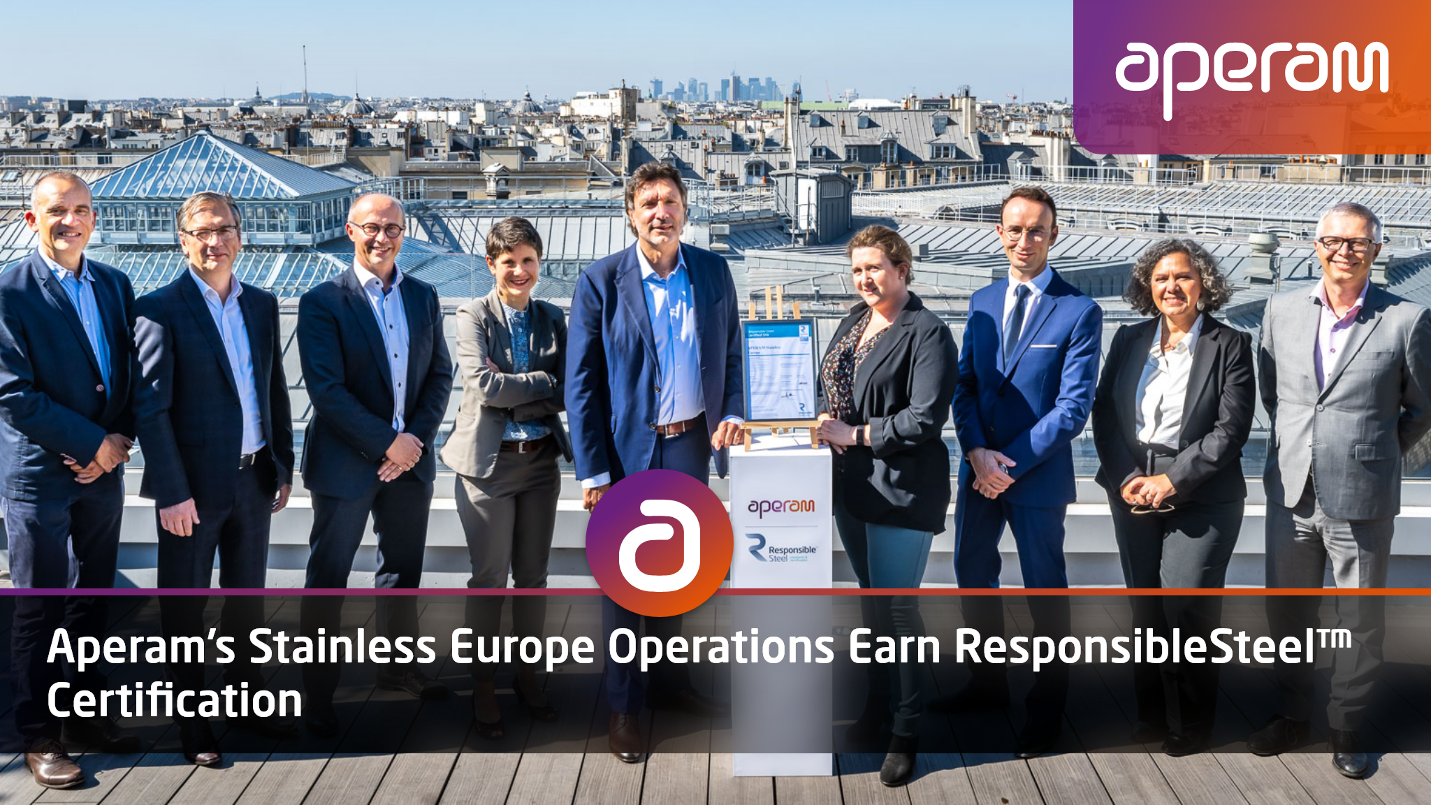 Aperam's Stainless Europe wurde von unabhängigen Auditoren erfolgreich nach dem "ResponsibleSteel"-Standard zertifiziert. Die "ResponsibleSteel"-Initiative ist das erste weltweite Zertifizierungsprogramm für Nachhaltigkeit im Stahlsektor.
